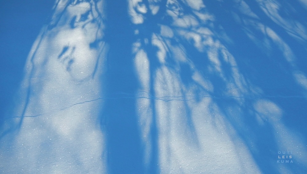 Lumi kantaa vielä, mutta virtaa päivä päivältä enemmän, pitsireunoittuu, haurastuu, kun kevät kulkee solisten hapertuvien hankien alla.